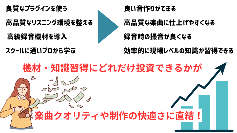DTMは"機材や知識習得にどれだけ投資できるか"が、楽曲クオリティや制作の快適さに直結します。