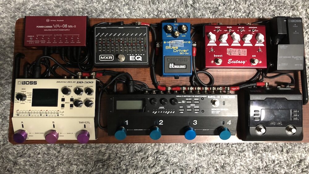 以下の写真は僕が以前組んでいたものですが、このようにエフェクターボードに組み込みやすいのも特徴です。