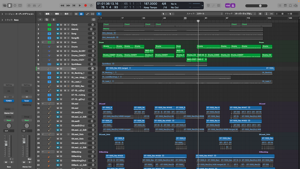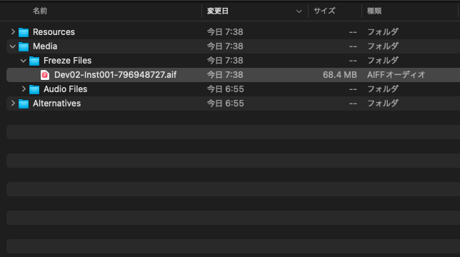 「打ち込みメインの楽曲は容量が大きくならない」と解説しましたが、フリーズ機能を多用すると容量が肥大化します。