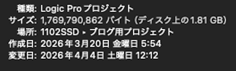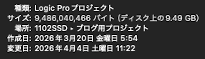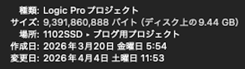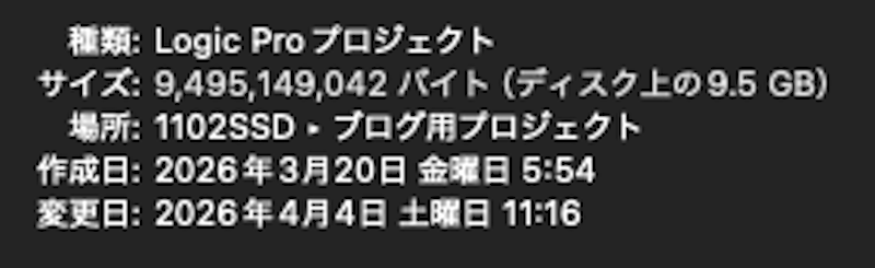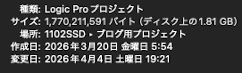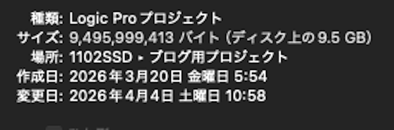 Logic Pro(以下:Logic)に限らず、DAWのプロジェクトは「このくらいの容量が普通」と明確には言えません。