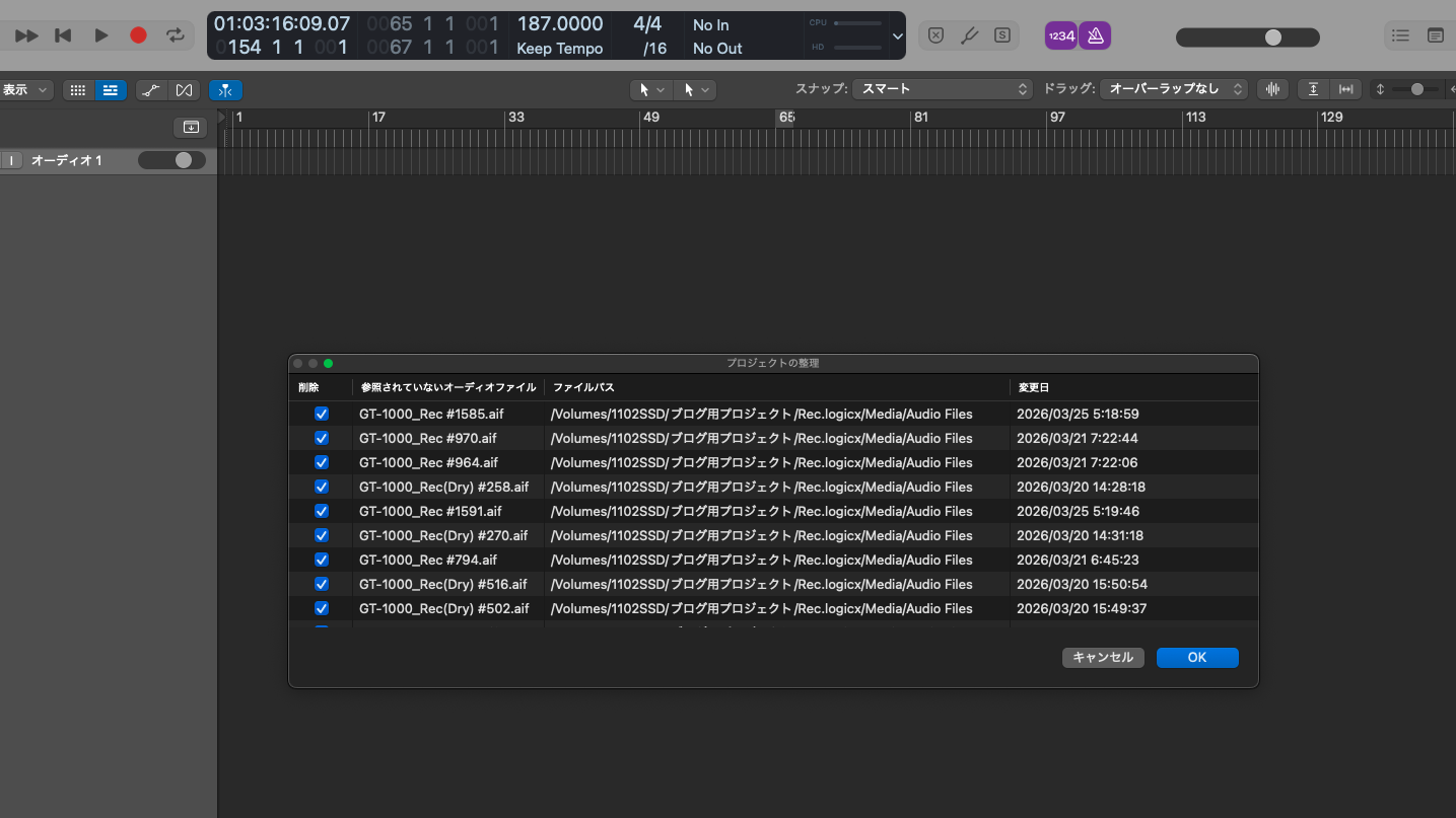 以上、Logic Proのプロジェクト容量が増える原因と減らす方法についてでした。