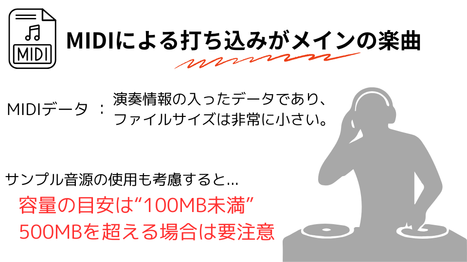 ただし、音源を取り込むタイプのサンプラーを使用する場合は容量が大きくなる可能性があります。